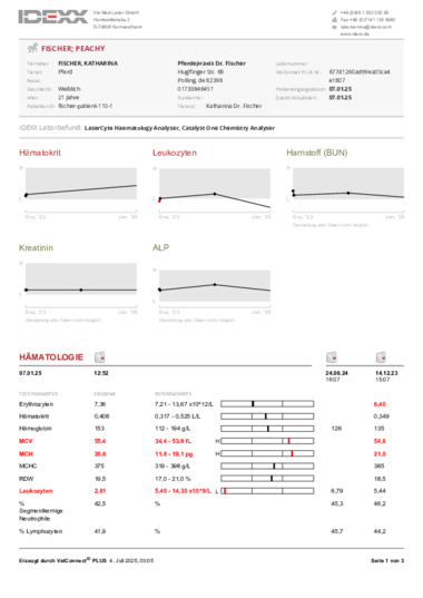 Dadurch können vor allem in Notsituationen oder am Wochenende direkt Blutergebnisse mit in der Behandlung Ihres Pferdes berücksichtigt werden.