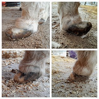 | • | Pferd möglichst nicht (viel) bewegen, je nach Grad der Hufrehe | |